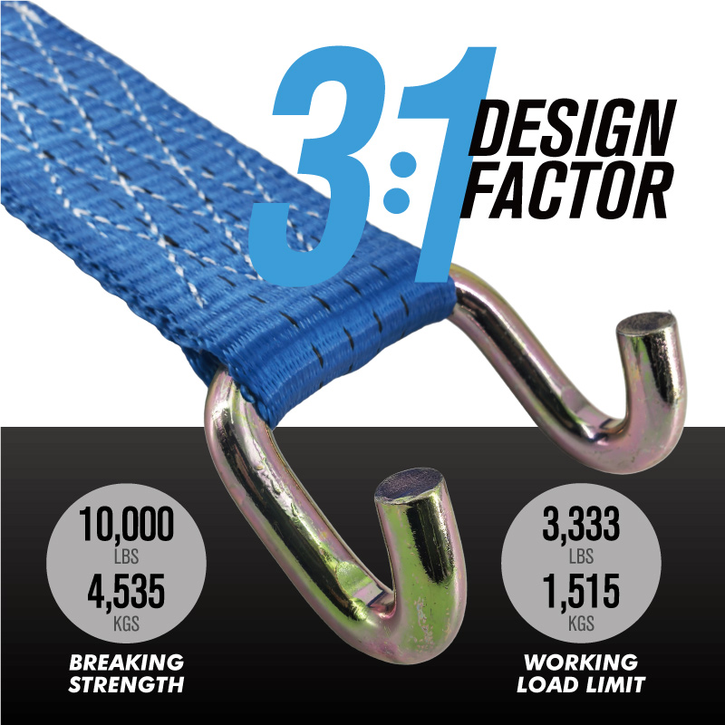The GLP 30ft Heavy Duty Strap utilizes a compact U Hook design, perfect for hooking into narrow anchor channels and tight tie-down points where larger hooks won't fit. Each hook is precision-forged and finished with a weatherproof zinc plating to resist the elements. This configuration is the gold standard for daily towing and construction logistics, providing a dependable, high-tension connection that stays secure regardless of road conditions.